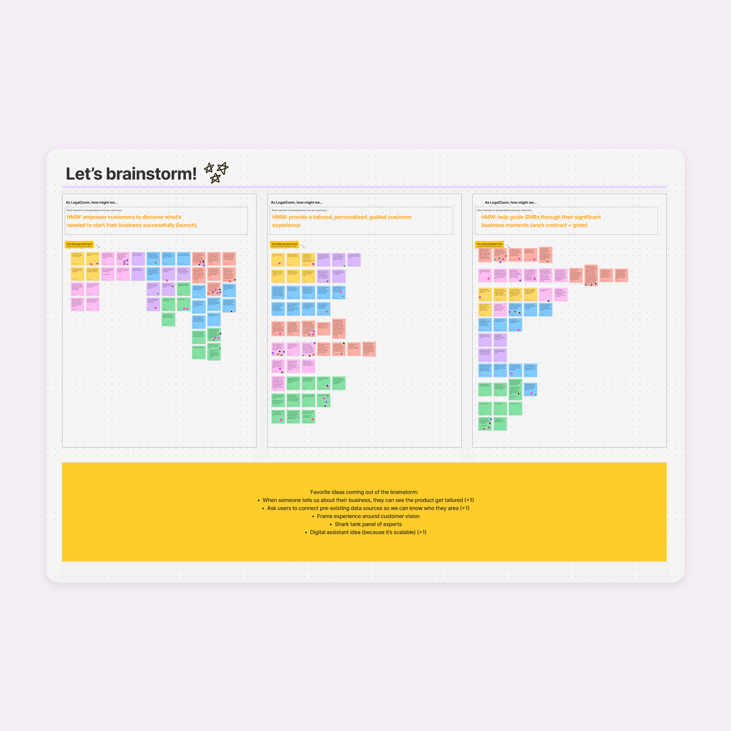Led cross-functional discovery to surface leadership assumptions, customer problems, and future-state ideas, then synthesized them into a cohesive end-to-end small business journey.